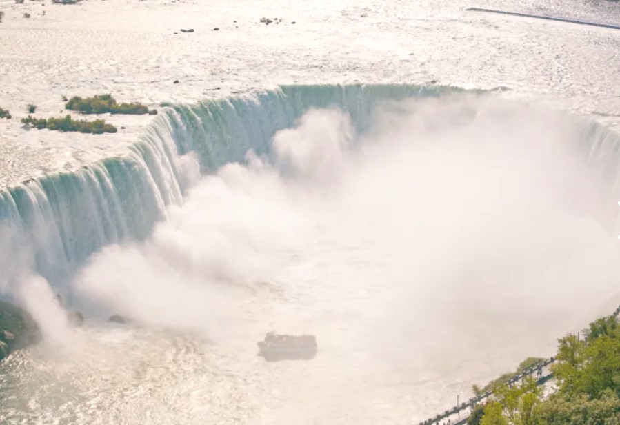 Next, your guide will bring you to the famous Maid of the Mist boat ride. Before you board, you’ll have a chance to check out the view from the Prospect Point Observation Tower, located directly above the boarding site. While you’re on the Maid of the Mist boat tour, you’ll take in incredible views, hear the thunderous roars of the rushing waterfalls and you may get a bit wet, depending on where you stand – but don’t worry, you will be provided with a rain poncho for this boat ride.